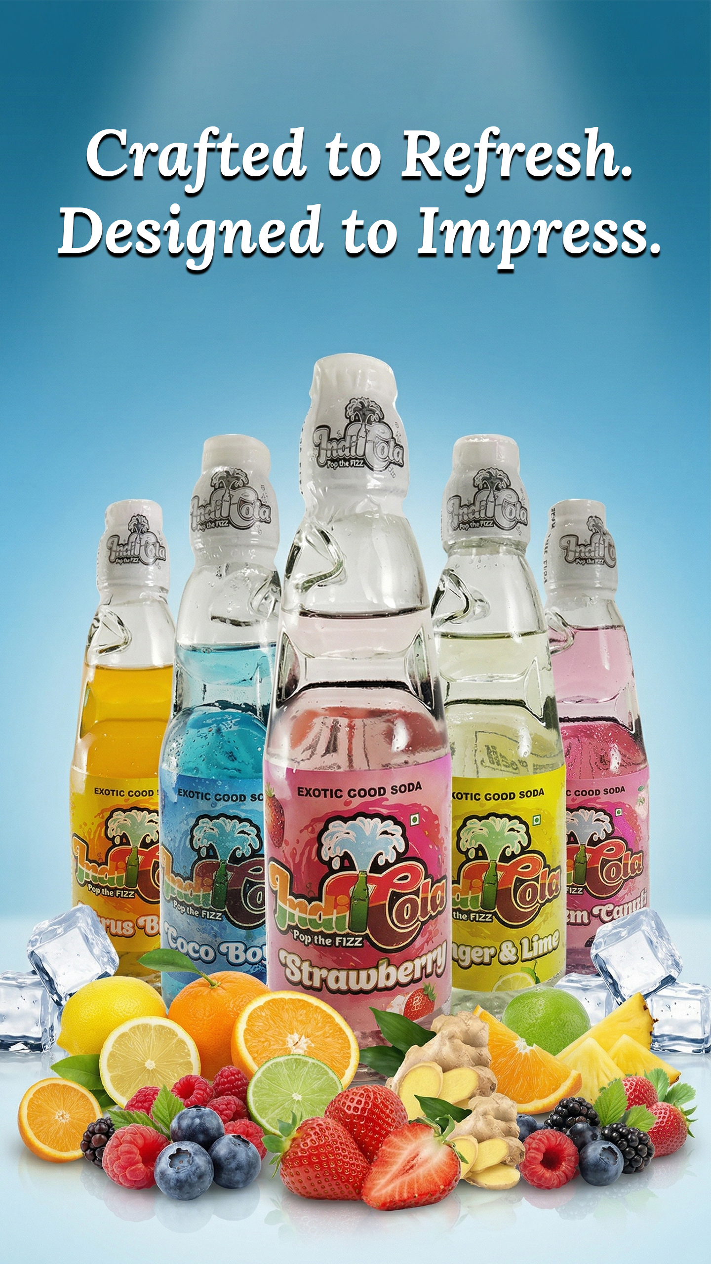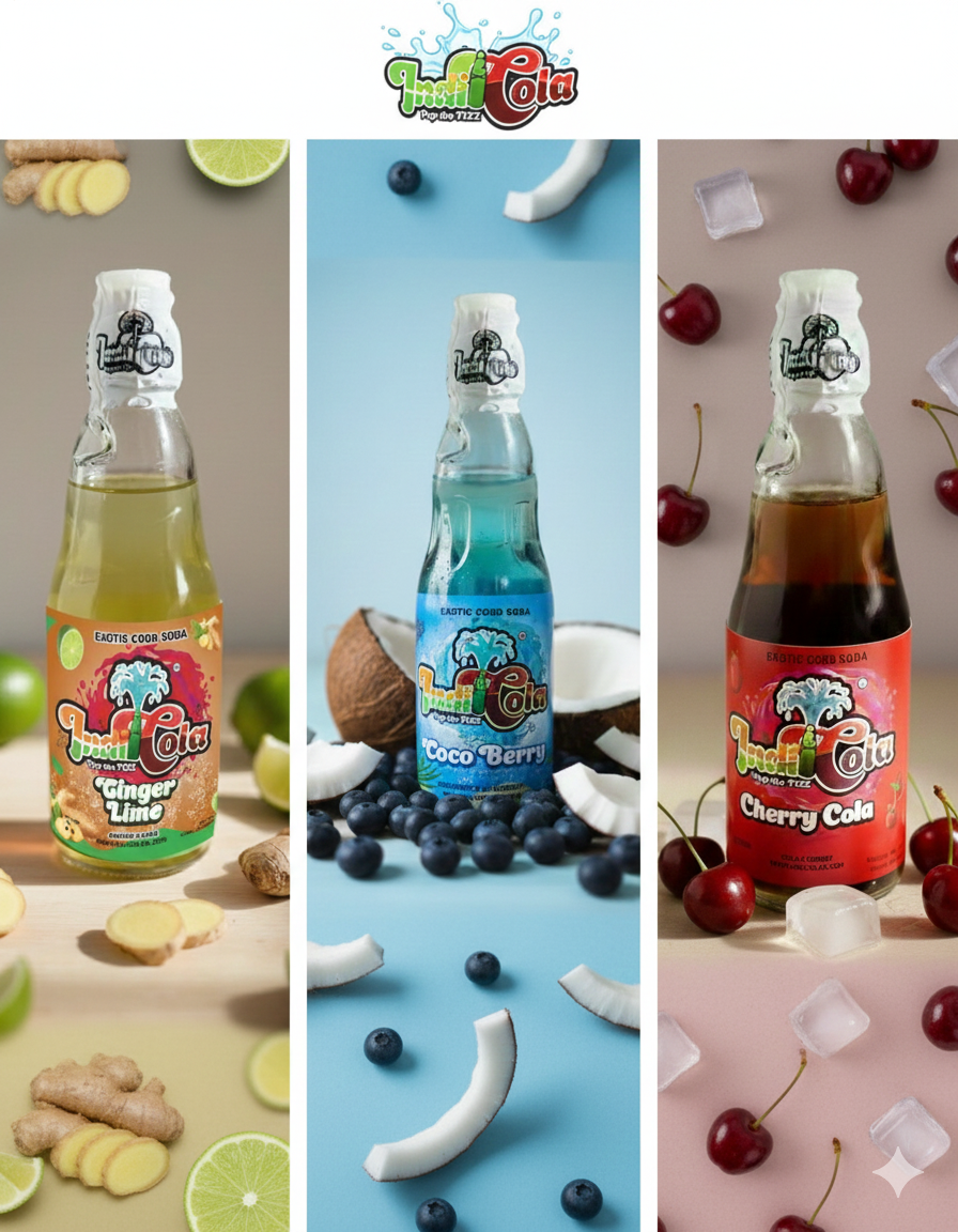 Indicola isn’t just a drink — it’s nostalgia and flavor reimagined. Inspired by India’s iconic Goli Soda/Banta Bottle, we’re reviving the classic fizz and fun that defined true Indian soda culture. Our mission is simple: bring that golden experience to the USA with a bold, modern twist.